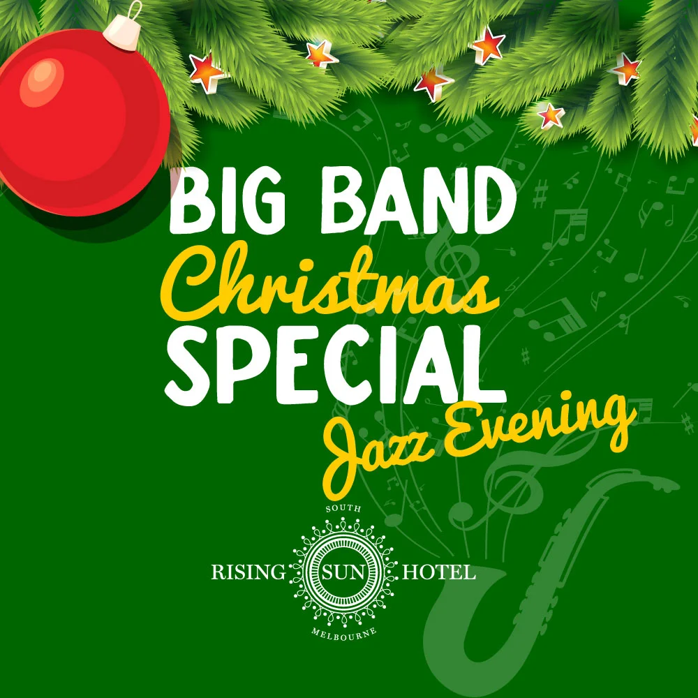 Join us on Tuesday the 20th of December with the oldest residency in Australia for a SPECIAL CHRISTMAS EVENING! 20 Piece Big Brass Band playing all the swing favourites. Book Now to secure a table. Dinner from 6pm-9pm.