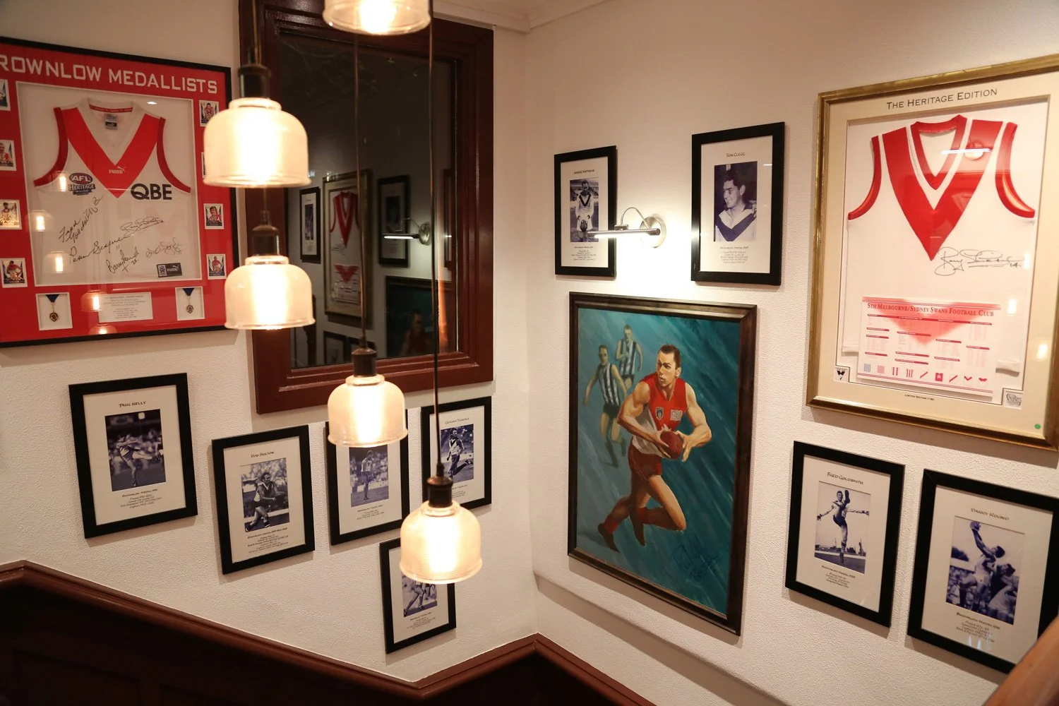Don’t miss our ‘Team of the Century’ painting in our dining room or our ‘Bloods Brownlow Medal Staircase of Fame’,